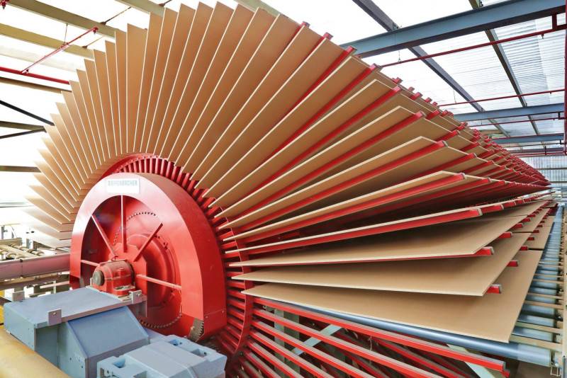 На завершающем этапе МДФ охлаждают и шлифуют под пленку ПВХ, шпон или натуральное дерево, полируют под покраску эмалью. На выходе получается материал, не уступающий по большинству параметров натуральной древесине, а в некоторых случаях и превосходящий ее.