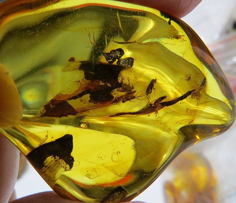 Обратить внимание на инклюз – древние насекомые, застряв в смоле, они отчаянно пытались выбраться. Поэтому крылья у них широко расправлены