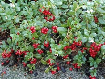 Все просто. Посмотрите на фото — это ягоды брусники на кусте: