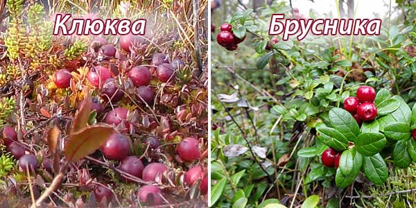 Это — внешние различия между клюквенными и брусничными ягодами. Имеются также отличия во вкусе плодов и разница во внешнем виде кустов.