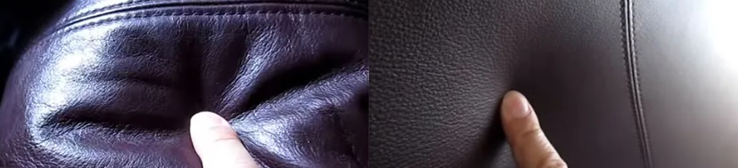 - Надавите пальцем на обивку. При надавливании пальцем на поверхность сидения, натуральная кожа растягивается и мнётся, в то время как на поверхность искусственной кожи достаточно надавить пальцем, и она сохранит свою жёсткость и форму. Также при надавливании, на натуральной коже проявляются мелкие морщинки, чего вы не увидите в случае с искусственной кожей.