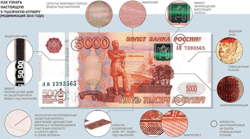 Как проверить купюру в 5000 рублей