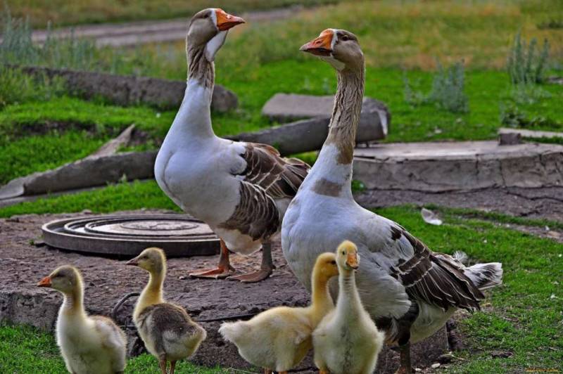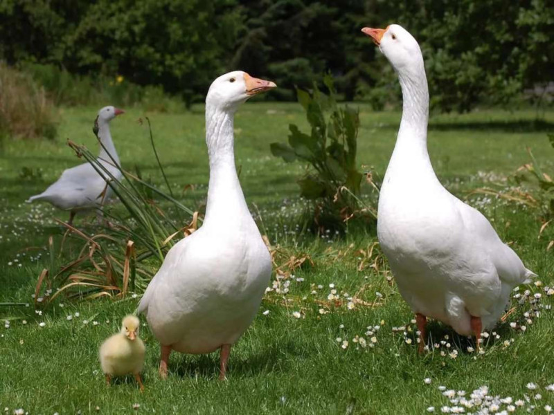 - Здоровое потомство. Если завод гусей производится не для одноразового выращивания, а с целью потомства, отбирайте одного лучшего гусака в среднем на четыре гусыни.