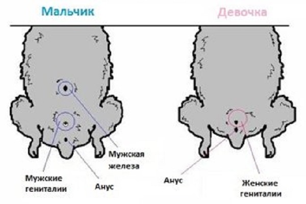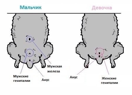 В этом случае нужно обратить внимание на анальное отверстие и мочеиспускательный канал (уретру). Расстояние между двумя отверстиями позволит легко понять, какого пола зверек