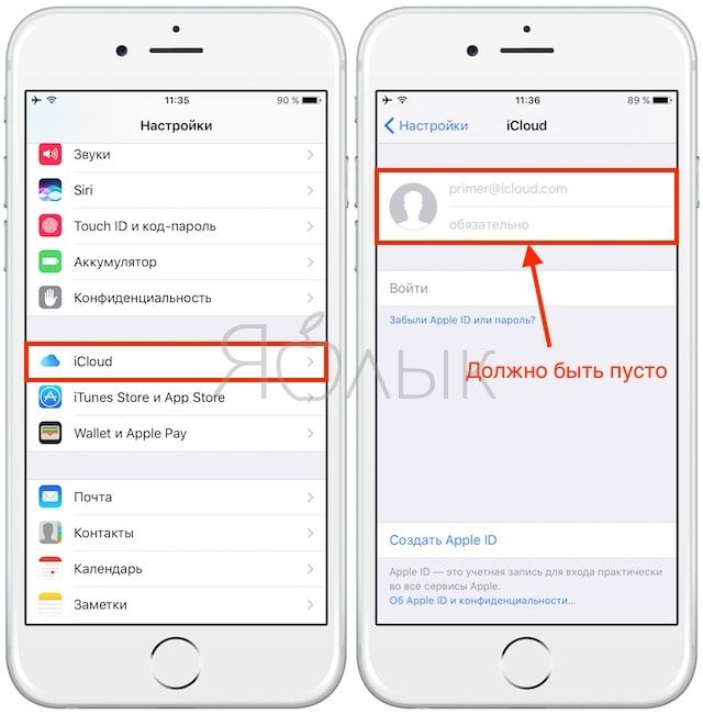 2. Если такой раздел присутствует и в нем не указана чья-либо учетная запись (кнопка Войти), введите Ваши данные. В случае, если входу в Вашу учетную запись ничего не препятствовало – значит перед Вами оригинальный iPhone. Должно быть так: