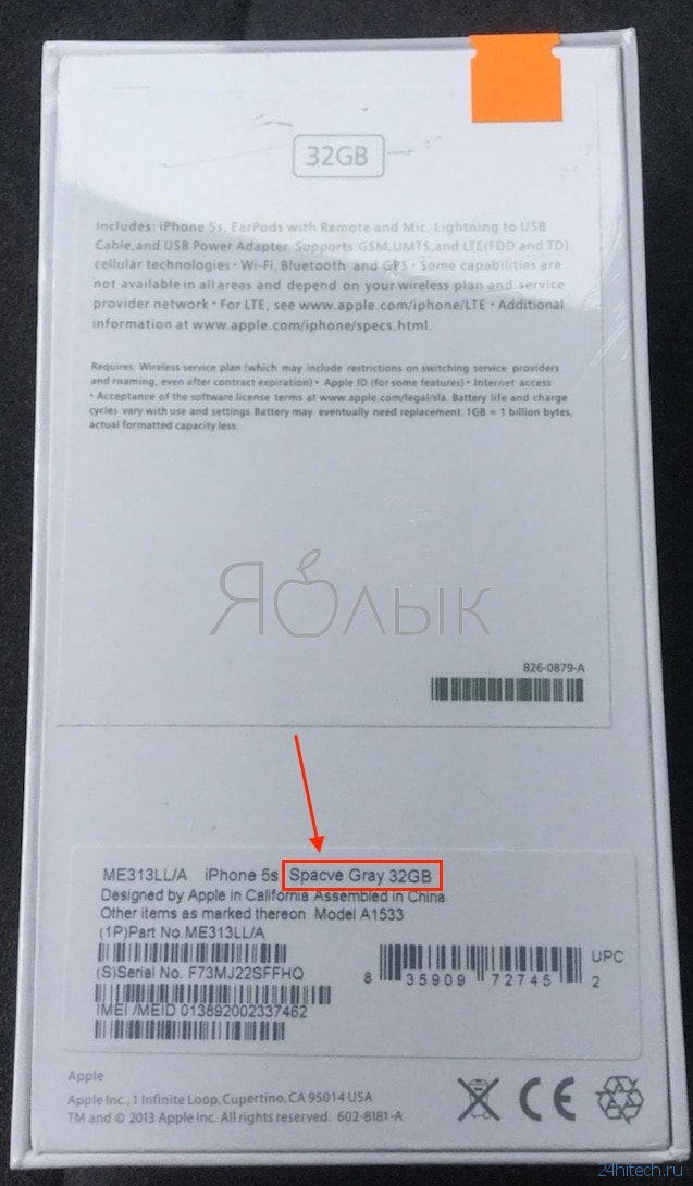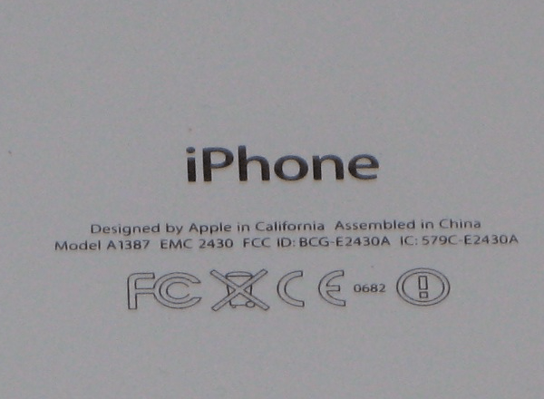 Так должна выглядеть надпись на задней крышке оригинального iPhone 5S
