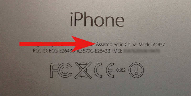 Помимо отличительного знака на задней панели телефона должны присутствовать надпись на английском языке, что гаджет произведён компанией Apple, в Калифорнии.