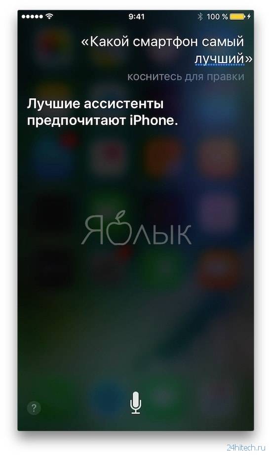 Siri. Голосовой помощник Apple запускается путем нажатия и удержания круглой кнопки Домой. Для уверенности можно задать Siri несколько вопросов. На Android это не работает. На оригинальном iPhone это выглядит так: