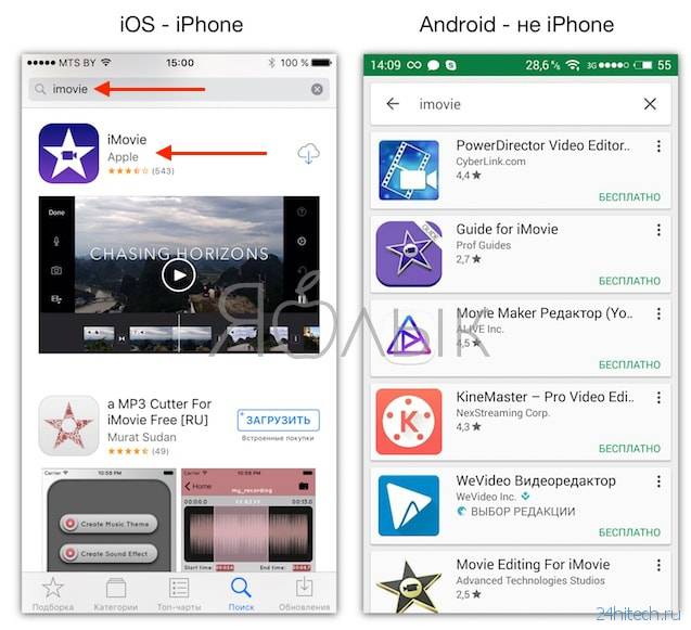 3. Для большей уверенности, зайдите в приложение App Store и наберите в поиске iMovie или Garage Band. Это приложения Apple, которых нет на Android. Логично, что если такие приложения имеются в поисковой выдаче, значит iPhone оригинальный.