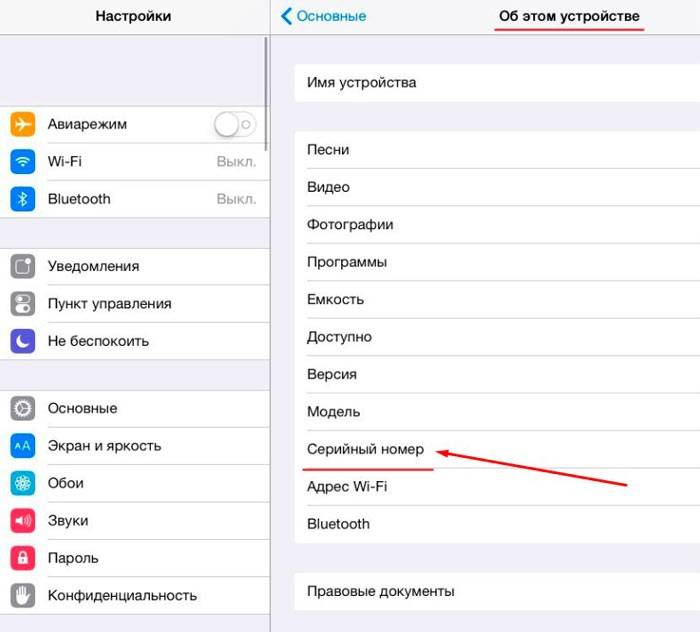 Заходите в настройки телефона: «Настройки → Основные → Об этом устройстве». Там отображается номер модели. Нужно проверить первые буквы, стоящие в начале серийного номера: