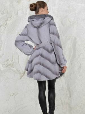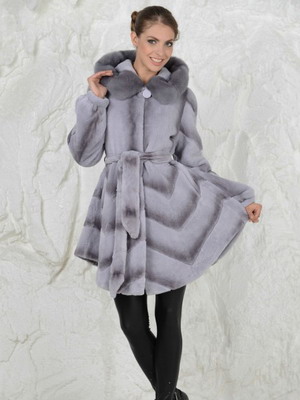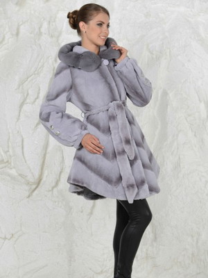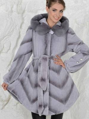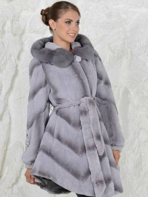 Немного ниже на фото шуба из бобра красивого дымчатого цвета выглядит невероятно стильно и роскошно, особого шарма изделию придает поясок, завязывающийся на талии: