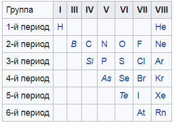 | Галогены | Благородные газы |