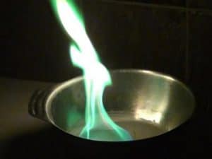 - Проверить можно при помощи огня. Подожгите жидкость и понаблюдайте, какого цвета пламя. Если синего цвета – перед вами пищевой, если зеленого – метиловый.