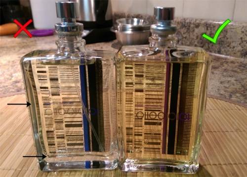 Многие ценители брендовой парфюмерии знают, что мошенники чаще всего подделывают флаконы объемом от 100 мл, так как делать фальсификат меньшего объема им невыгодно. Поэтому безопаснее всего покупать маленькие объемы – 30 мл. В продаже не встречаются подделки духов объемом 30 мл. Поэтому, если собираетесь покупать больший объем, удостоверьтесь, что у продавца есть в наличии и маленькие флаконы.