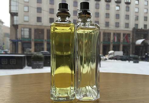 - в поддельной версии трубка обычно заканчивается посередине бутылки и ее отчетливо видно внутри флакона;