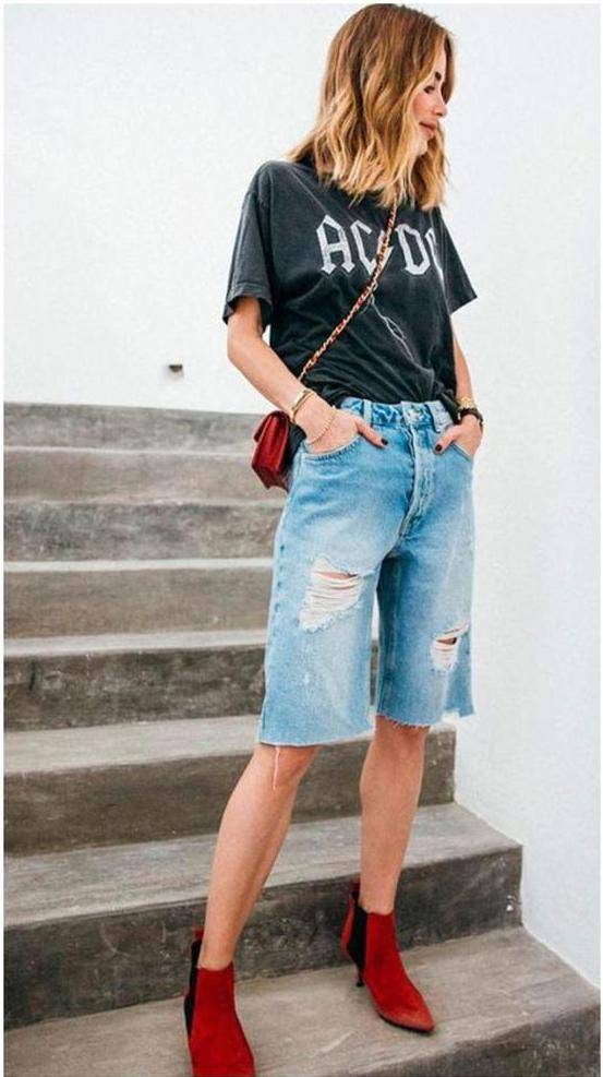 Изначально носились английскими мужчинами во время колониальных войн. Первое производство таких брюк было запущено на Бермудах, от которых и пошло название. Бермуды могут иметь разную длину, классической считается — немного выше (5-10 см) колена до середины колена. Джинсовые бермуды обычно имеют свободный прямой крой и шьются из плотной ткани.