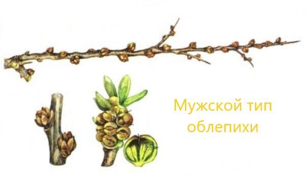 Облепиха мужская — облепиха является двудомным растением. А это значит, что в одном случае будут присутствовать только женские цветки, которые впоследствии дадут плоды, в другом — только мужские, чьей задачей является производство необходимой пыльцы. Мужская облепиха плодов не дает, но крайне необходима для воспроизводства ягод. Если засадить весь сад только женскими растениями, толку от этого никого, т. к. в этом однополом обществе не будет опыления и плодов. А хотелось бы, и именно для этого существует мужское растение (дерево-опылитель), которое высаживается примерно в соотношении один «мужчина» на 6-8 «женщин».