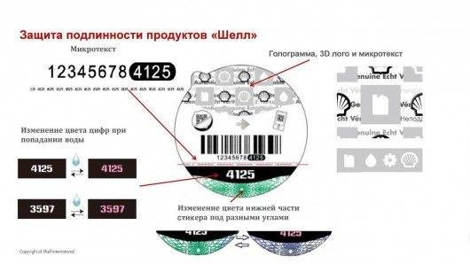 Shell также использует уникальный код для проверки на оригинальность. Найти его можно на крышке канистры под отрывным стикером с голограммой. Код состоит из 16 цифр и проверяется на сайте компании.