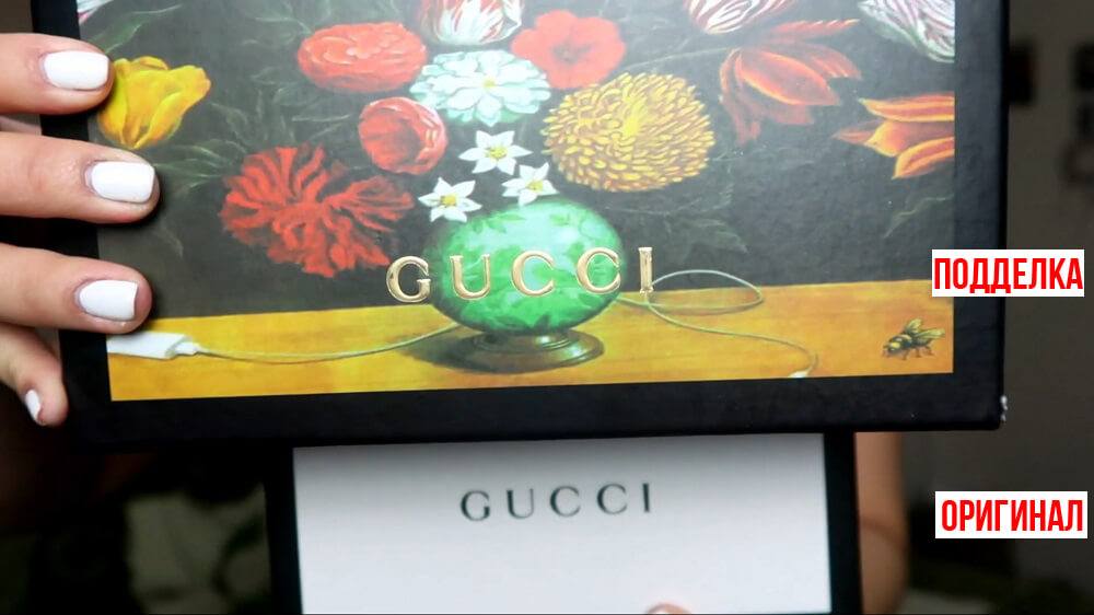 Фирменная коробка Гуччи всегда выполнена в спартанском, лаконичном стиле. Фальсификаторы часто стараются придать привлекательный вид, делая яркую упаковку.