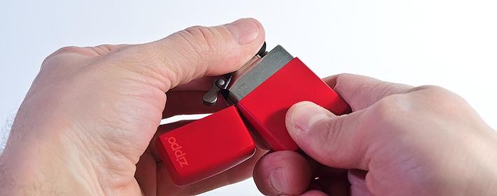 Отличить настоящую зажигалку удастся по колесу для поджигания, которое называется кресалом. Оно фиксируется на ветрозащитной части посредством заклепок – стальных или сквозных. Колесико отличается четкими симметричными насечками, которые перекрещиваются под углом в 30 градусов. Фейки часто дополняют прямые насечки.