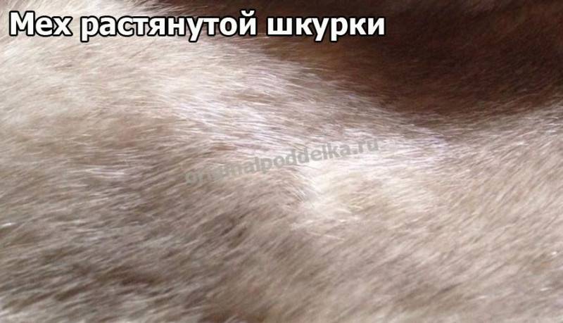 Чрезмерно растянутые шкурки не обладают прочностью, а также кожевенная основа такого меха не удерживает остевые волоски и подшерсток.