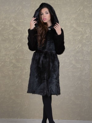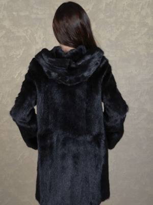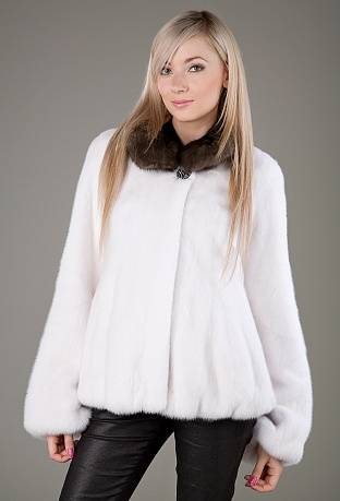 - Хорёк. У хорька, в сравнении с норкой, имеется более высокая ость, а подпушь — редкого типа. Он обладает своеобразной расцветкой: подпушь при этом светлая, а ость тёмная на концах. В области боков можно легко заметить светлые области, а на спинке ость тёмной расцветки полностью перекрывает подпушь. Кроме этого, шкурки хорька ценятся ненамного меньше, чем норки. Они считаются менее долговечными, но при этом очень тёплыми. Из шкурки хорька не шьют изделия в роспуск, так как сквозь мех из-за редкого пуха будет сильно выделяться шов. Именно по этой причине модели из его меха в основном обладают прямым фасоном.
