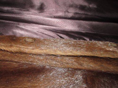6. Посмотрите мездру, подняв подол у подкладки, если она не пришита, или раздвинув мех с внешней стороны. Берите шубу только со светлой мездрой, которая указывает на отсутствие краски и молодой мех.