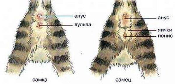 Также у самцов больше шерсти в области гениталий, которая появляется начиная со второй недели жизни.