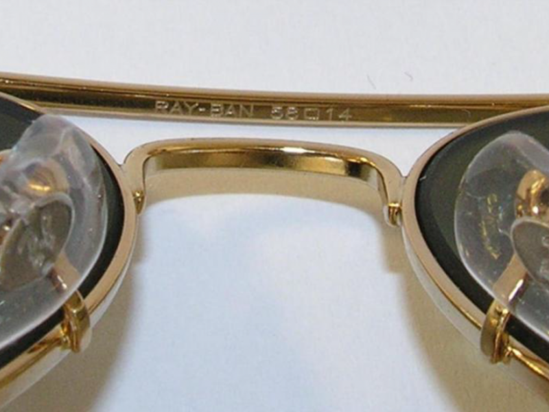 - Для очков в металлических оправах (Aviator и других) признаком подлинности служит оттиск логотипа Ray-Ban на внутренней стороне переносицы и на носовых упорах.