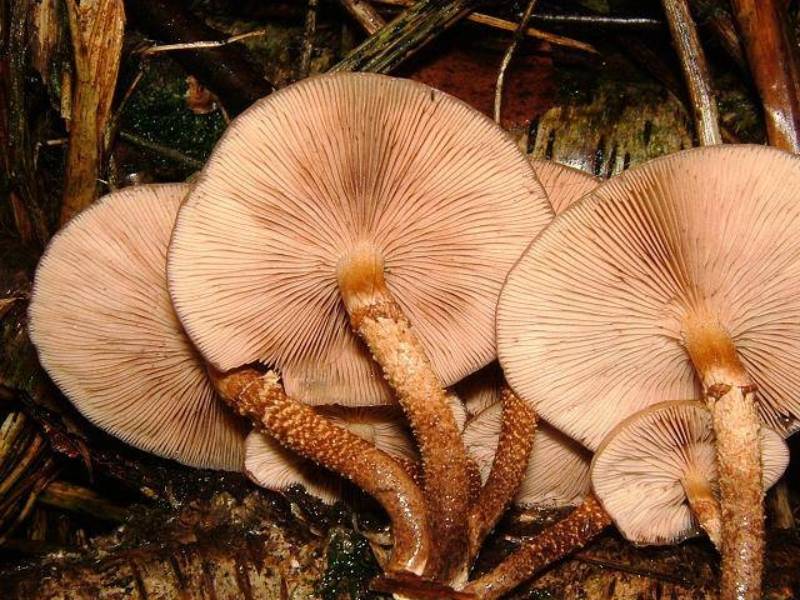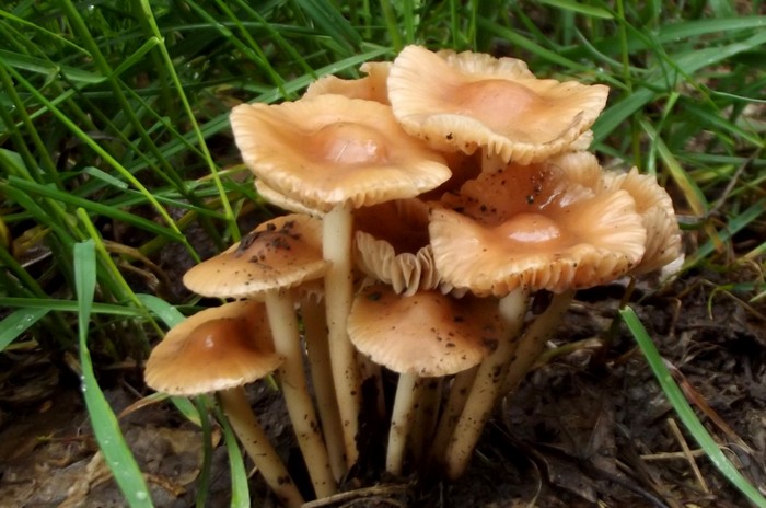 Компактные, и собраны в большие группы. Высота ножки не превышает 15 см, а шляпка достигает диаметра в 7 см.