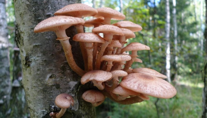 Эта разновидность считается самой распространенной. На каких деревьях растут, где растут опята и сколько — знать полезно. Ведь встретить их можно на срубах или стволах деревьев в лиственном лесу. Плоды компактные, а высота ножки не превышает 6 см.