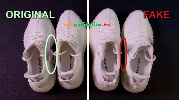 Очень просто. На фейковой обуви ярлык чаще всего крепят на левый кроссовок. У оригинала всегда для крепления используется правый.