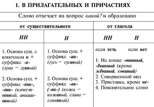 Таким образом, если слово соответствует хотя бы одному из названных пунктов, оно является причастием, значит, нужно писать «нн»; если слово не соответствует ни одному пункту, то это отглагольные прилагательные («н» и «нн» в каких случаях писать, мы уже выяснили), нужно писать одну букву. При необходимости определить частеречную принадлежность написанного слово с двумя буквами будет являться причастием, с одной – нет.