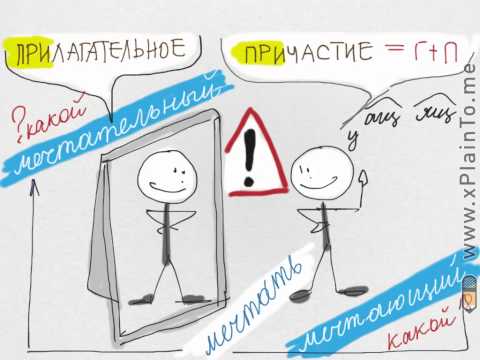- Признак предмета, который выражает слово. Причастное слово меняется по действию, а прилагательное – нет.