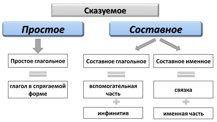 Вспомним, что сказуемое — это главный член предложения, который позволяет нам передать, какое действие совершает предмет или лицо. Посмотрим на типы сказуемых: