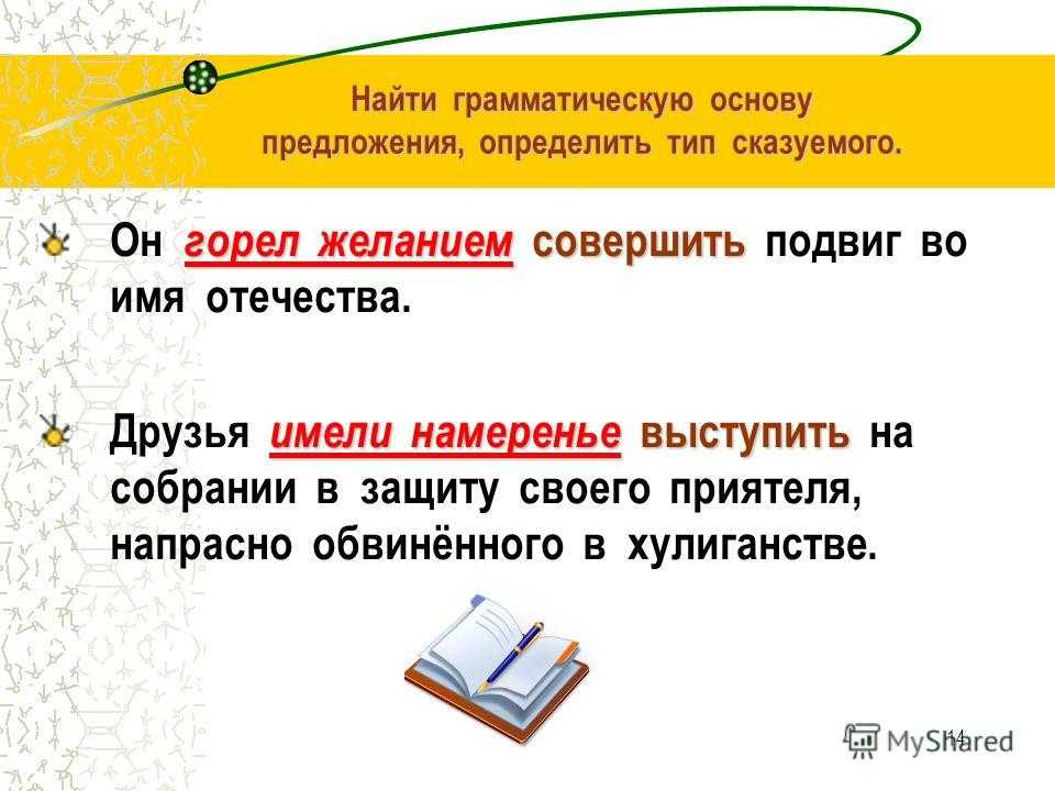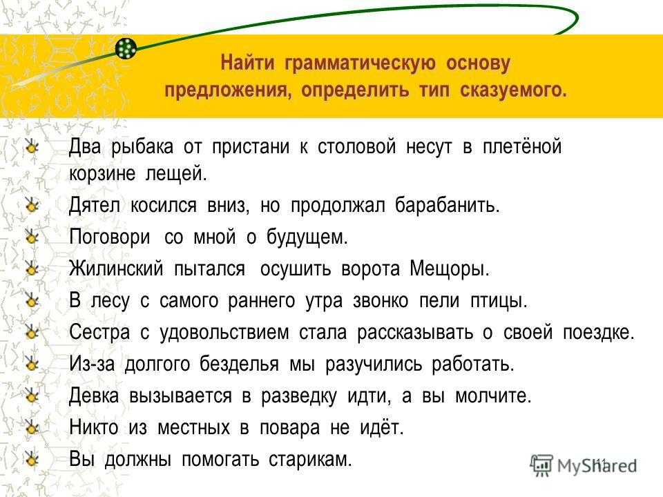 Вспомним, что сказуемое — это главный член предложения, который позволяет нам передать, какое действие совершает предмет или лицо. Посмотрим на типы сказуемых: