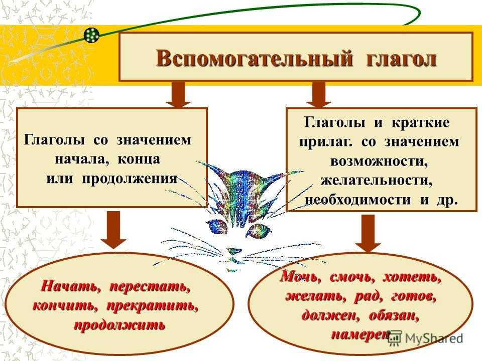 В качестве вспомогательного глагола выступают следующие группы слов.