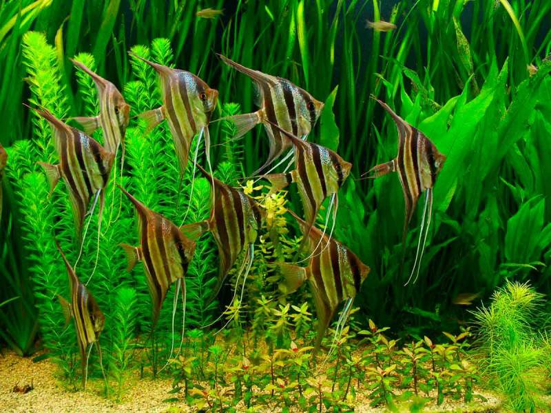 Несмотря на то что большинство источников указывают на полную совместимость скалярий с аквариумными растениями, это не так. Взрослые рыбы с удовольствием выдергивают из грунта быстрорастущие растения со слабой корневой системой (например, хемиантус микрантемоидес и ситняг игольчатый). Если это произойдет, добавьте немного рыбьего корма, содержащего спирулину, в рацион.