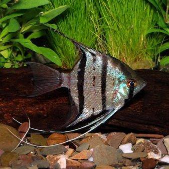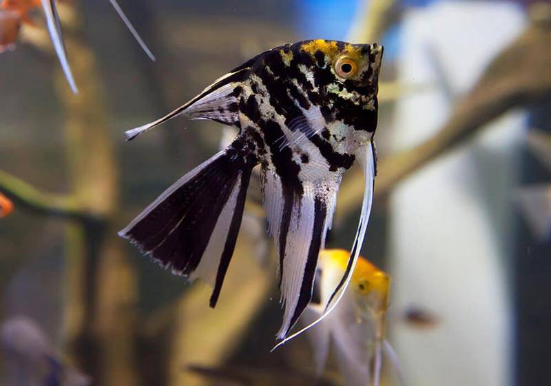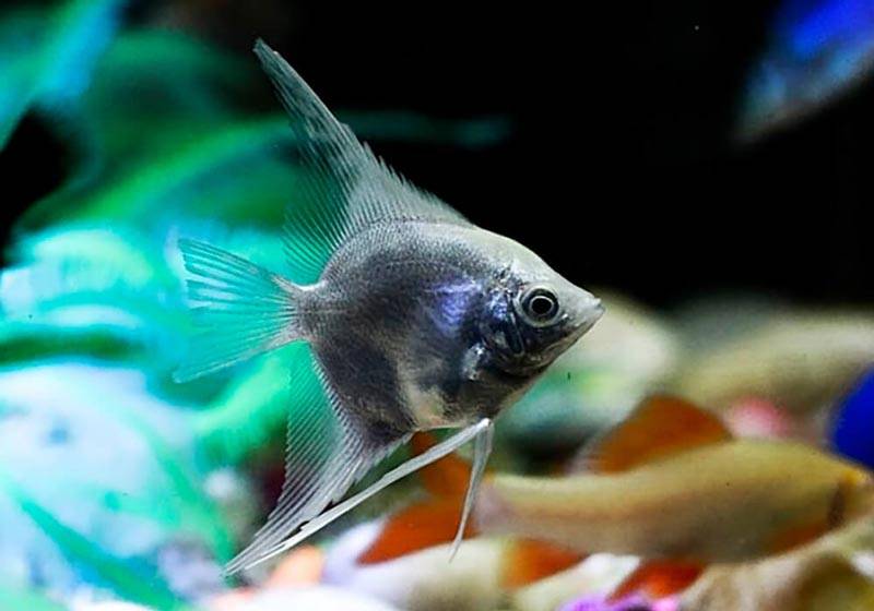 Наиболее распространены скаляры серебристого цвета. Благодаря такому окрасу рыбки отлично маскируются. Также вы можете найти мраморный, черный, жемчужный, полосатый, леопардовый и другие цвета. Взрослые могут быть около 15 см в длину и 25 см в высоту.