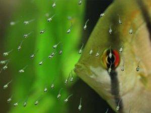 - Перед началом нереста самки с самцами содержатся в одном аквариуме, так как у особей мужского пола половые продукты способны созревать только, если рядом находится самочка;