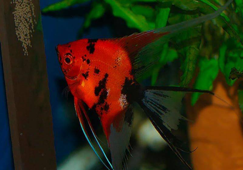 Во время нереста самка может выметать 300-700 икринок. Икру скалярии откладывают на листьях растений или других находящихся в аквариуме предметах. Через 3 дня появятся мальки. А еще примерно через неделю маленькие скалярии научатся плавать.