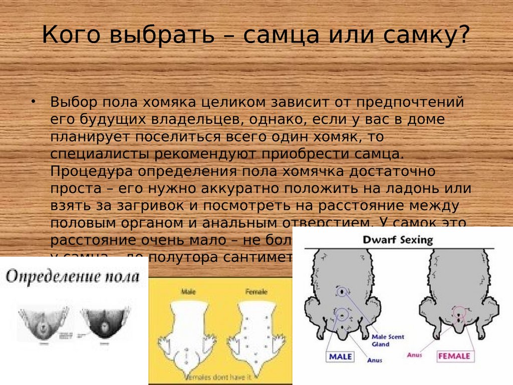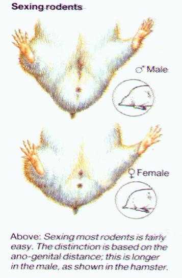 Следует обратить внимание на наличие сосочков, наиболее густую растительность у мальчика, размер особи и расположение половых органов. У самок хомяков расстояние между мочевыводящими путями и анусом всегда минимально