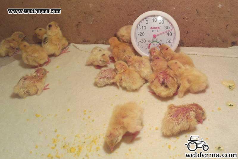 Если их пересадить в брудер мокрыми, перья на сухом воздухе могут высохнуть слишком быстро и прилипнуть к телу плотной коркой. Затем их пересаживают в брудер, в котором устанавливают температуру, соответствующую возрасту (см. выше).