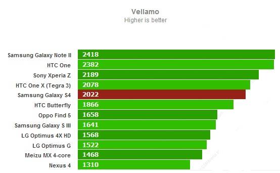 Аппарат южнокорейской компании обошёл HTC One и Optimus G Pro в однопоточном (Benchmark Pi) и многопоточном (LinPack) тестах производительности. Оба этих телефона используют тот же чипсет, но только с частотой 1,7 ГГц.