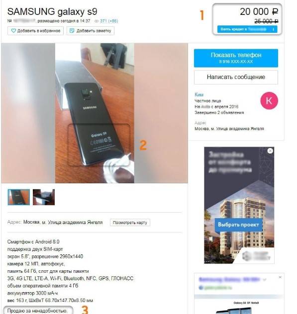 1. Средняя цена такого смартфона на момент просмотра этого объявления — 45 000 рублей. Благодаря такой низкой цене у объявления почти 400 просмотров за несколько часов.