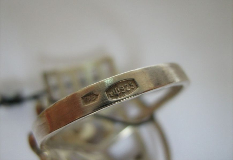 На серебряных украшениях, причем неважно — обычное или золоченое серебро, обычно стоит проба 925, такое серебро называют стерлинговым. На советских серебряных изделиях можно встретить пробу 875 и значок пятиконечной звезды