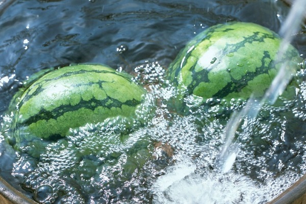 Арбуз помещают в ёмкость с водой. Созревший плод плавает на поверхности, неспелый — опускается на дно. Спелая ягода содержит больше сахаров и меньше жидкости, мякоть её более рыхлая, насыщена мельчайшими пузырьками воздуха. Поэтому зрелый плод легче воды и не тонет.