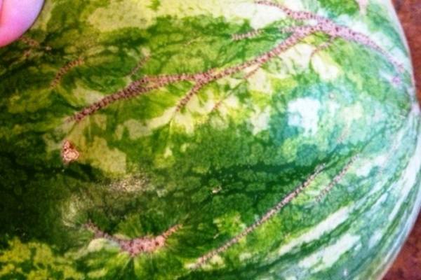 Бежевые следы на кожуре, похожие на сетку (не нужно путать с механическими повреждениями) — хороший признак, указывающий на спелость и сладость арбуза. Поверхностные шрамы на корке оставляют пчёлы и шмели при опылении цветка. Чем больше повреждений они нанесли, тем качественнее завяжется плод.