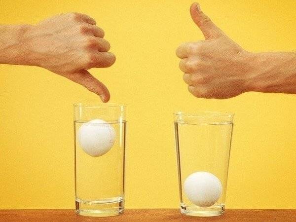 Чтобы проверить свежесть и «возраст» продукта, необходимо опустить его в емкость с водой, после чего сделать заключение: