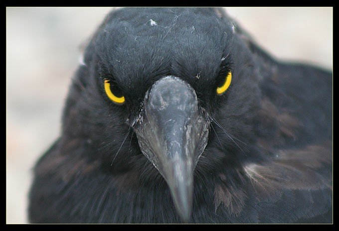 Кроме того, в чёрный цвет окрашена радужная оболочка, а также клюв. Хотя вороны и не принадлежат однозначно к хищникам, их клюв достаточно мощный и острый, чтобы разбираться с самыми разнообразными видами добычи.